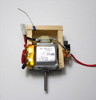 基盤をそのまま、電動コマに乗せ、モーターと並列に電池につないでいます。